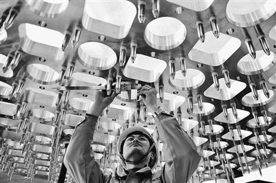 上海电气核电集团临港基地的工人在检测核电设备堆芯上板。目前,上海正积极打造面向国内外市场、国内领先、国际一流的核电创新产业基地。