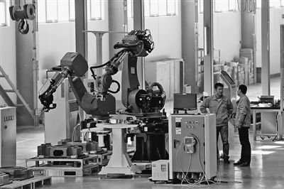 用机器人生产机器人,这不是科幻大片中的镜头,而是沈阳新松机器人公司“数字化无人工厂”的现实场景:车间内,机器人来回穿梭不停。从取货、搬运、装配零部件,再到喷涂、烘干、检测、成品入库,诸多环节全部由机器人完成。作为国内首条数字化机器人生产线,其年产能已达5000台,与人工操作相比,生产效率提高了5到10倍。机器人被誉为“制造业皇冠顶端的明珠”,其研发、制造、应用是衡量一个国家科技创新和高端制造业水平的重要标志。2014年,我国新增机器人5.6万台,其中有1万多台为国产。